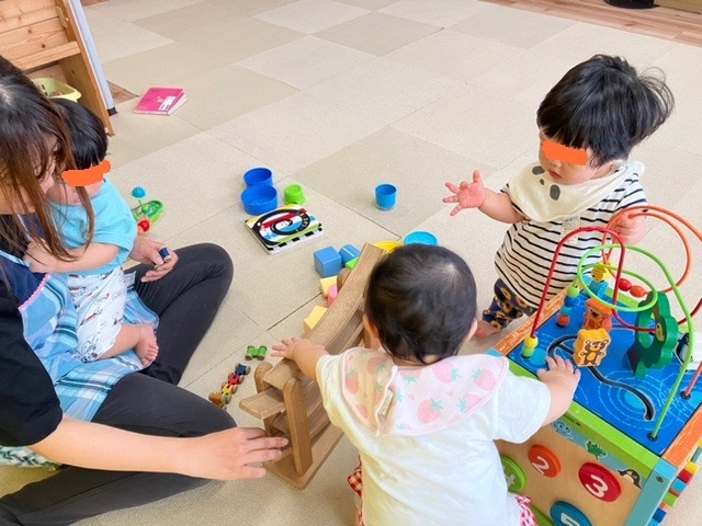 色々な玩具であそんだよ 2025.08.18 8月18日(月) 0歳児 お盆休み明けで久しぶりの登園でしたが機嫌良く過ごしていました。 カースロープやぽっとん落としなど色々な玩具に興味を持ち保育者と一緒に笑顔で楽しそうにあそんでいました。