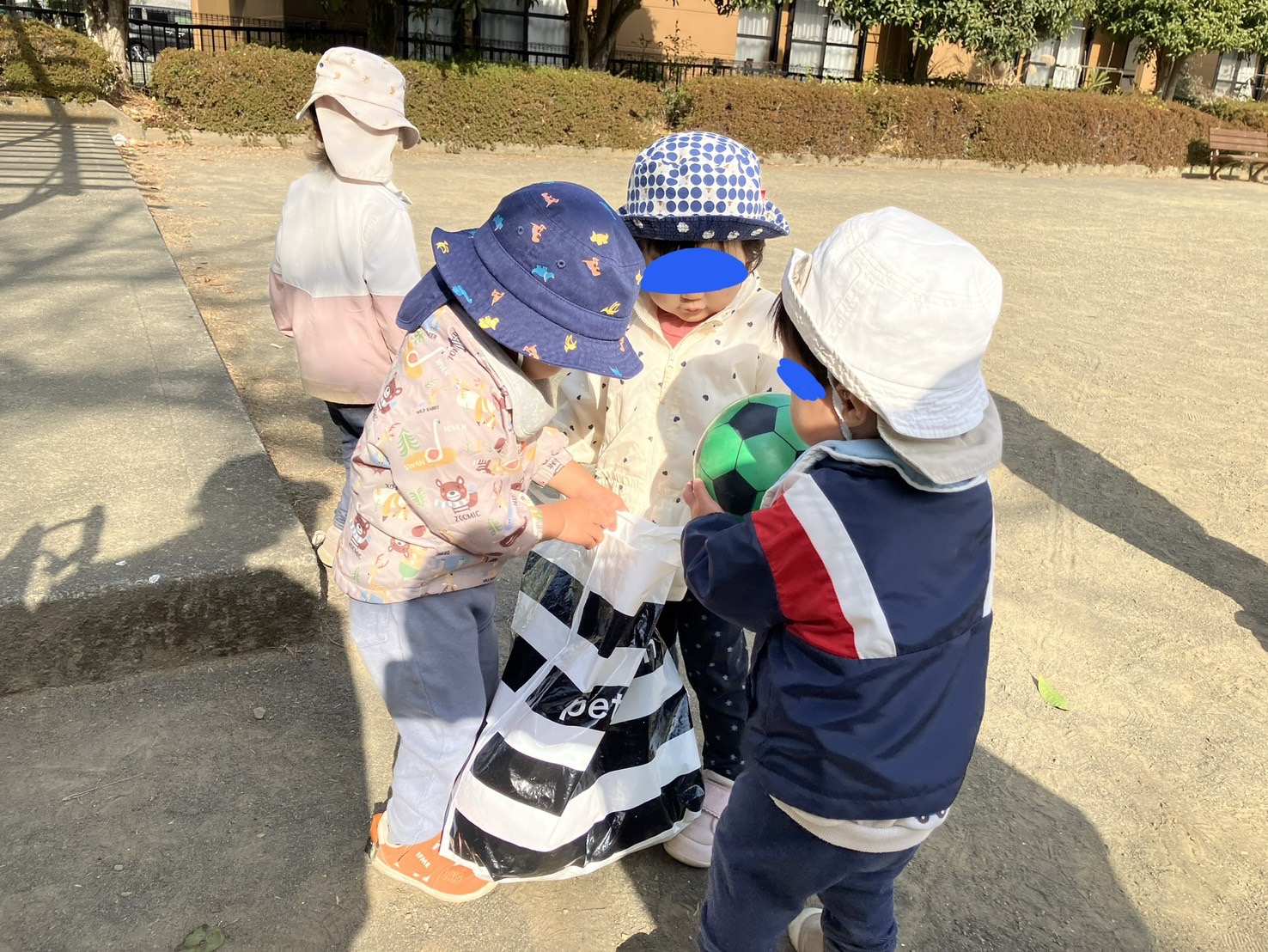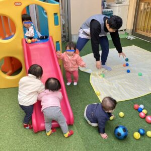 その後はボールを投げたり蹴ったりして遊びました。帰る時にはお友達と協力してボールを片づけてくれました✨
