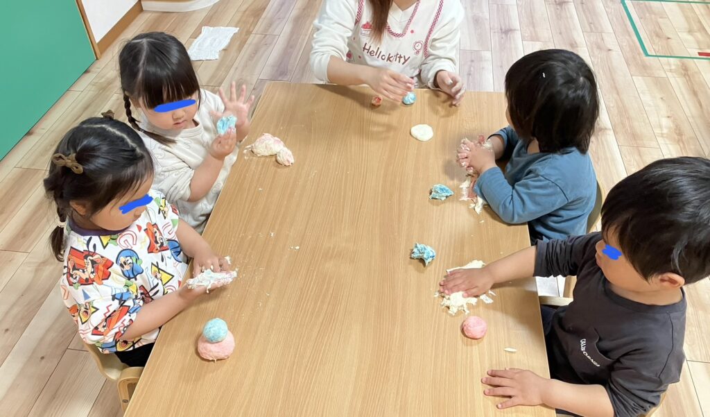 小麦粉粘土 2026.02.25 2026/02/25 水曜日 2歳児 今日は、小麦粉粘土で遊びました。 粘土を混ぜたりこねたり伸ばしたり、どの子も上手に遊んでいました😊 前に遊んだときよりも、格段に集中して取り組む姿がみられ、成長を感じました⭐︎