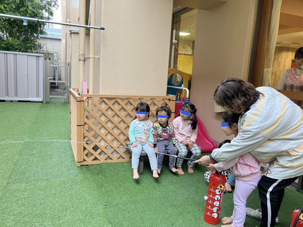 火災訓練 2026.03.25 3月25日(水)2歳児 今日は避難訓練をしました。 火災時の避難の練習をしたあと、消火器訓練を行いました。 今日は子どもたちも消火器を持ってみることに。 「消防士さんみたい!」と言って目を輝かせていました⭐️
