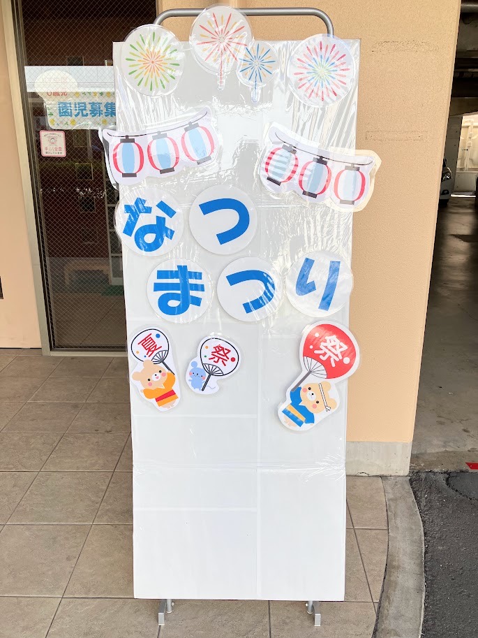 年間行事イベント報告 年間行事 4月入園進級の会 6月個人参加会、じゃがいも掘り、内科検診①、歯科検診① 7月夏祭り 11月なかよし会 12月クリスマス会、内科検診②、歯科検診② 2月豆まき、じゃがいも植え付け 3月ひな祭り、卒園式 毎月開催誕生会、避難訓練、身体測定 イベント報告 夏祭り 園内で夏祭りを行いました。保育士が作った遊びコーナーで、親子で遊びました。 more なかよし会 0歳児~2歳児まで12組の親子が参加しました。園内で自己紹介をした後、南安倍公園へ移動し、玉入れかけっこや手遊びをして遊びました。 more 個別参加会 1日ひとりずつ[おかあさん・おとうさん先生]としてクラスに入ってもらいました。 more