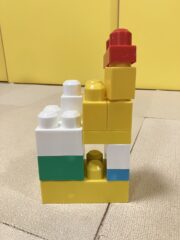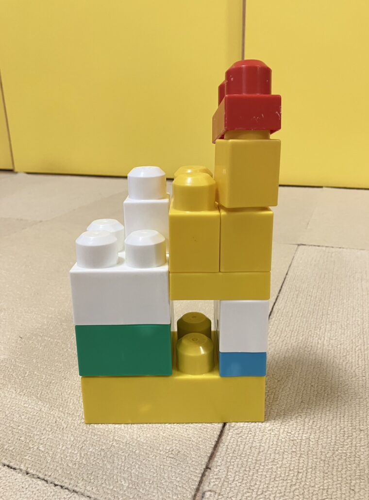1歳児の子がブロックで船を作りました。「ザブーン、ザブーン、」と言いながらゆっくりと船を動かして楽しんでいました。