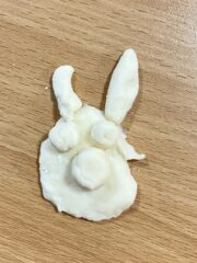 2歳児の子が粘土でばいきんまんを作りました。以前保育士が作っていたものを見て真似したようです。